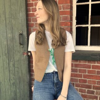 Wollie roze met bruine voering en dubbele knopenrij (uitverkocht)