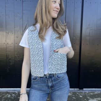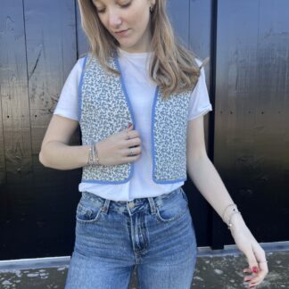 Tweet blauwe bloemetjes met gerecyclede voering en opgestikte zak