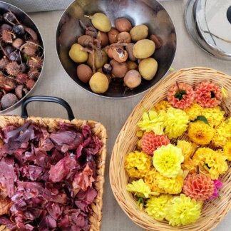 Kastanjes, bloemen, paddenstoelen en nog veel meer! Bij deze workshop maak je gebruik van alles wat de natuur te bieden heeft om de prachtigste kleuren te maken. We werken uitsluitend met restmaterialen van natuurlijke oorsprong.